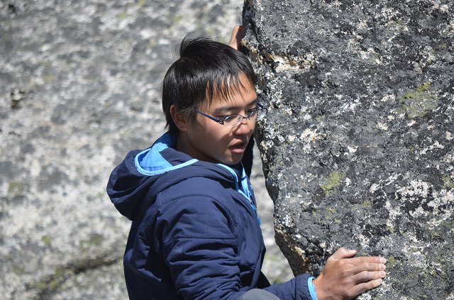 写真は、今朝のランダック(タルチョの向こうに見える双耳峰。奥が主峰)と、ここ数日のレスト中に楽しんだボルダリングの様子です。