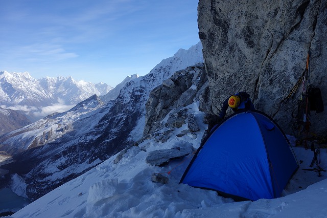 15日はベースキャンプまでの長い道をトボトボ歩いて帰りました。ガレ場の下りを警戒して朝早く出発したおかげで雪が硬く、仲間が待つベースには思ったよりも早く戻ることができました。
